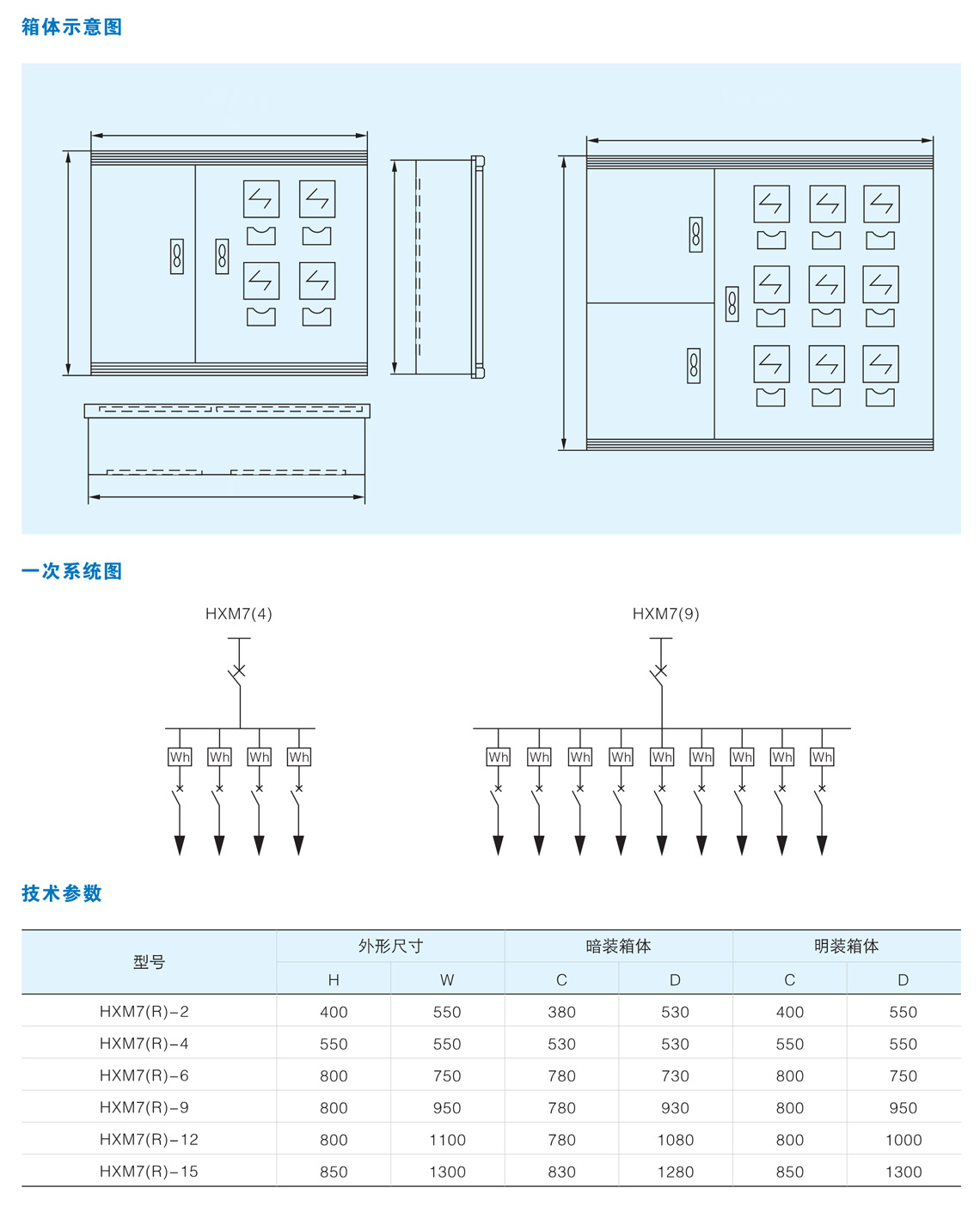 DXM7型群户计量箱是本公司根据多层住宅用电安全需要而设计,本着安全、经济、合理、可靠的原则设计研制的新型电表箱。该款电表箱壳体产品具有线路、电器过载短路保护,人体触电保护,安装方便,系列性强,实用性强,结构新颖,防护等级高等优点。