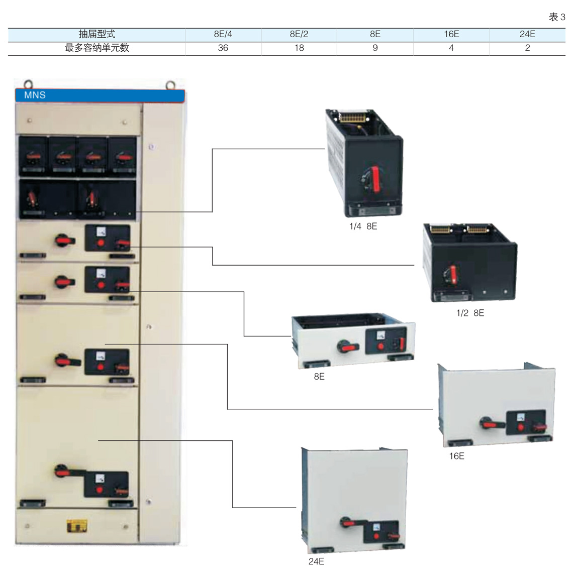 MNS型低压抽出式开关柜是根据市场需求而开发的新一代低压开关柜。产品技术标准符合IEC439《低压成套开关设备和控制设备》、GB7251 《低压成套开关设备》等标准要求。