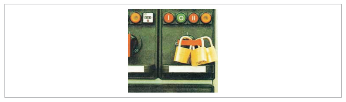 △为加强安全防范,操作手柄定位后可加上挂锁,最多可加三把锁,见右图。
